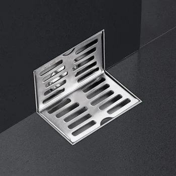 L Shape Stainless Steel Wall Side Floor Drain Balcony Same Layer Waste Filter Drainage Bathroom Corner Drain Stopper