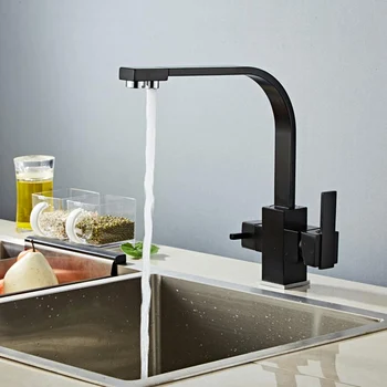 360 Degree Rotation Water Purification tap Modern Filter Water 3 Way Drinking Water Dual Handle Black Kitchen sink Faucet mixer