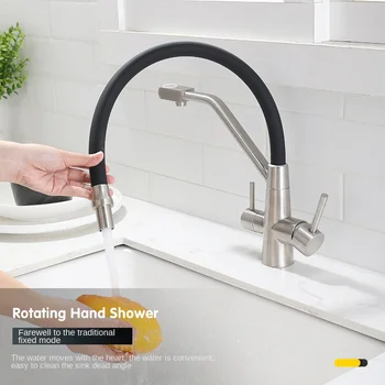 360 Degree Rotation Water Purification tap Modern Filter Water 3 Way Drinking Water Dual Handle Black Kitchen sink Faucet mixer