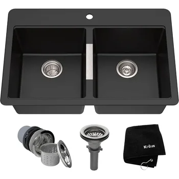 Kitchen Sink,33-Inch Equal Bowls,Black Onyx Granite, Household, large capacity, washing rice, vegetables, fruits