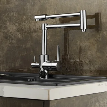 MTTUZK Brass Plating Chrome Kitchen Folding Faucet With Pure Water Cold Hot Kitchen Modern Drinking Water 3 Way Faucet Mixer